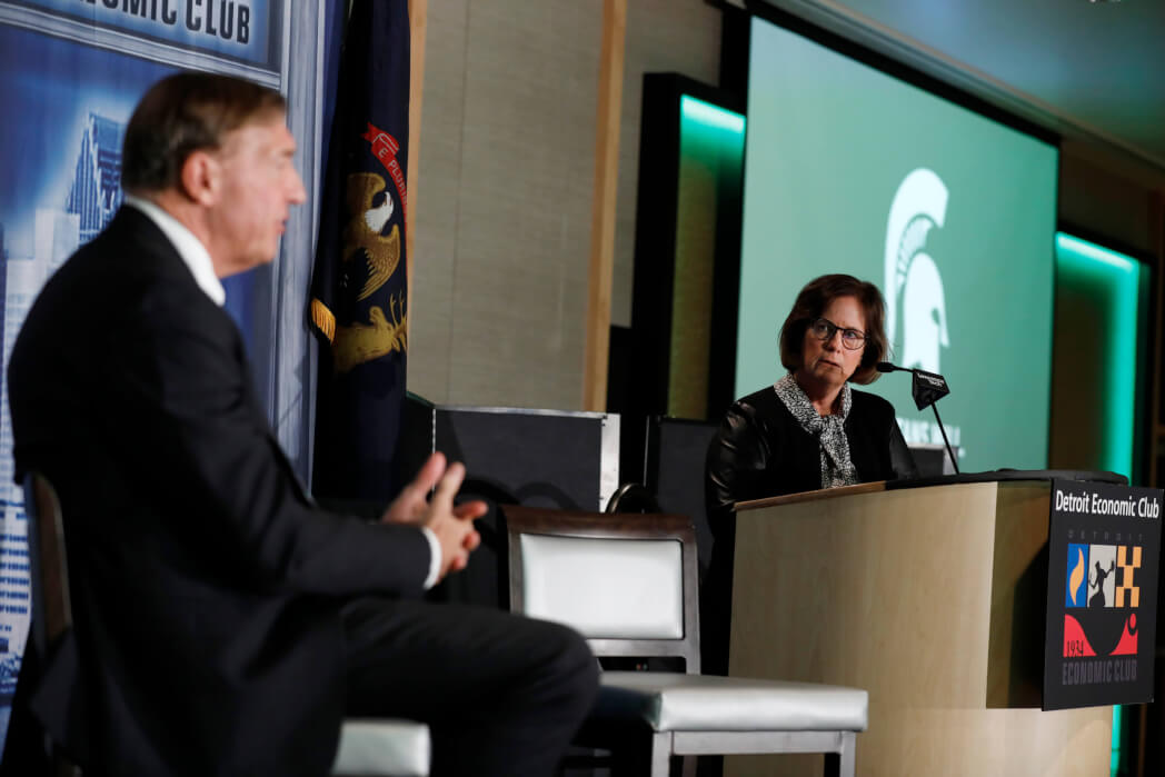 The DEC hosted Samuel L. Stanley Jr., M.D., President of Michigan State University, on Monday, December 6, at the MotorCity Casino Hotel. In a fireside chat with WJR’s Paul W. Smith, Dr. Stanley discussed “Leading The Way Forward: MSU Today and Tomorrow” and answered questions from the audience.