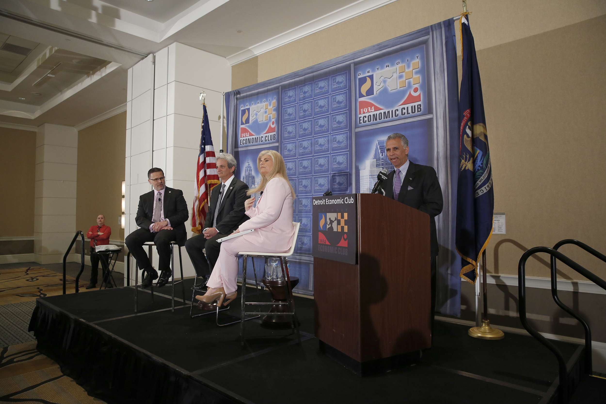 Kelly Services President & CEO George Corona and EY Detroit Office Managing Partner George Lenyo addressed the Detroit Economic Club on March 28, 2018 and discussed the gig economy.